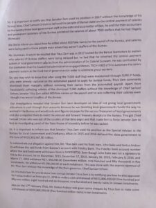 “Sir, it is important for you to know how corrupt Senator Titus Zam is by notifying you how he also approved for Festus Andoor on February 11, 2016 to make a cash withdrawal of N151,806,920.00 (One hundred and fifty-one million, eight hundred and six thousand, nine hundred and twenty naira) in sixteen instalments. Also on the 17” February 2016, Mr. Festus Andoor was given some cheques by Titus Zam to make some withdrawals of N200,000,000.00 (Two hundred million naira) in ten instalments.