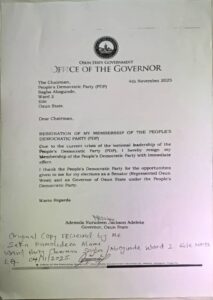The governor of Osun State, Mr. Ademola Adeleke has officially dumped the People’s Democratic Party.