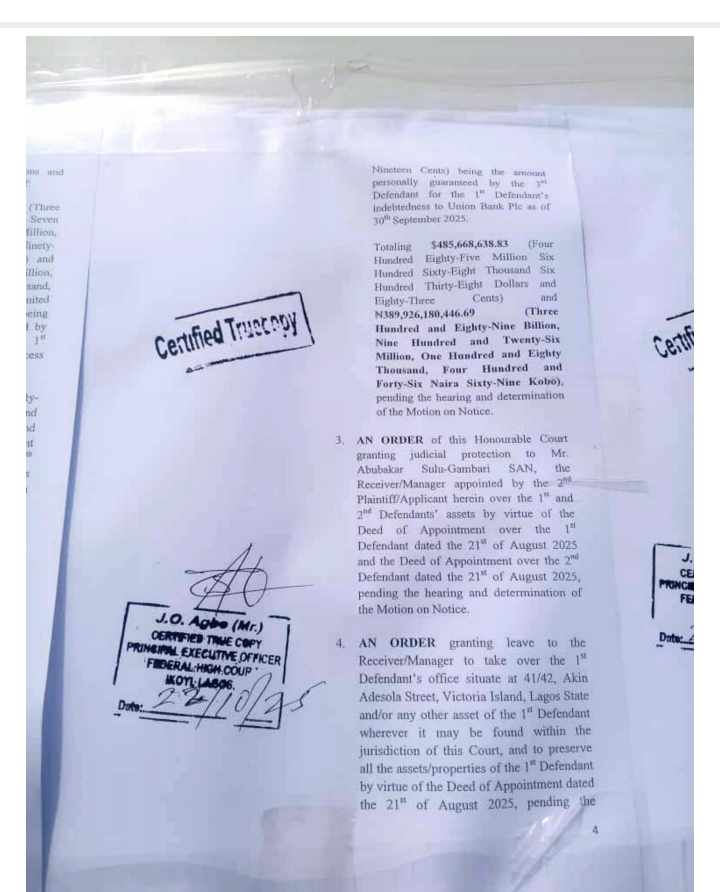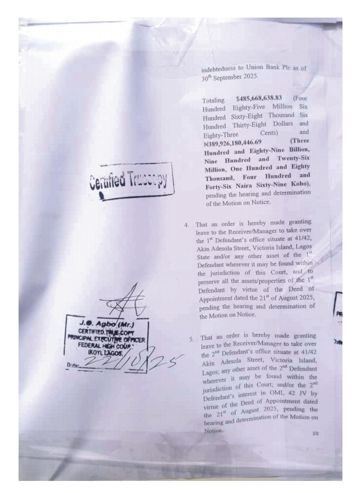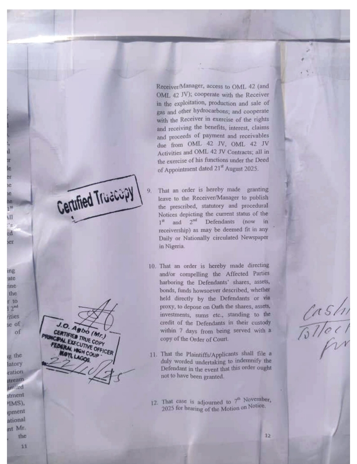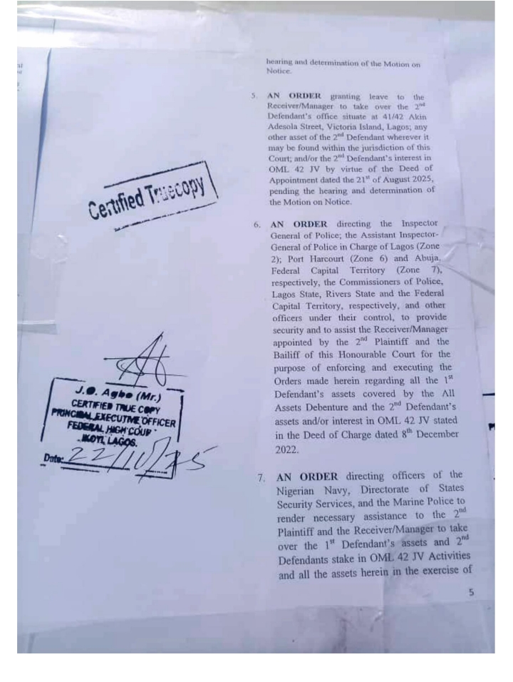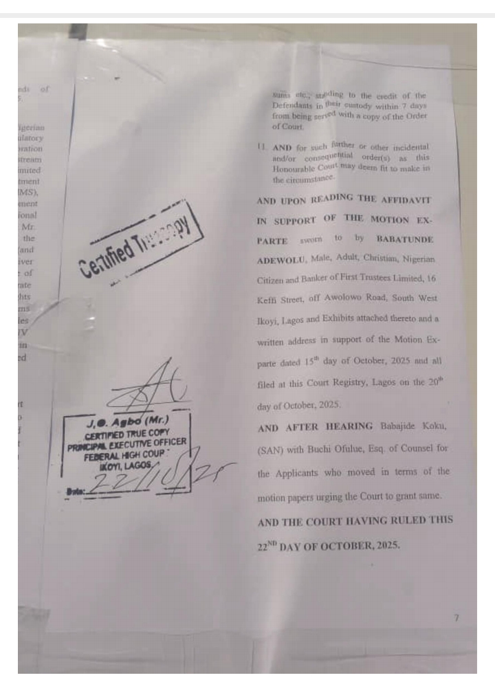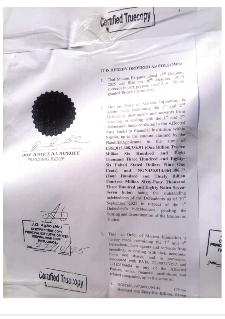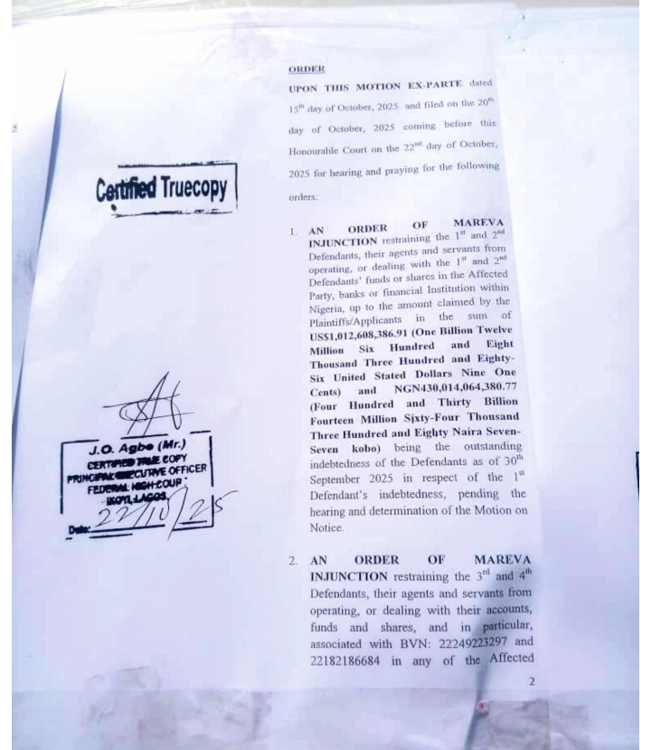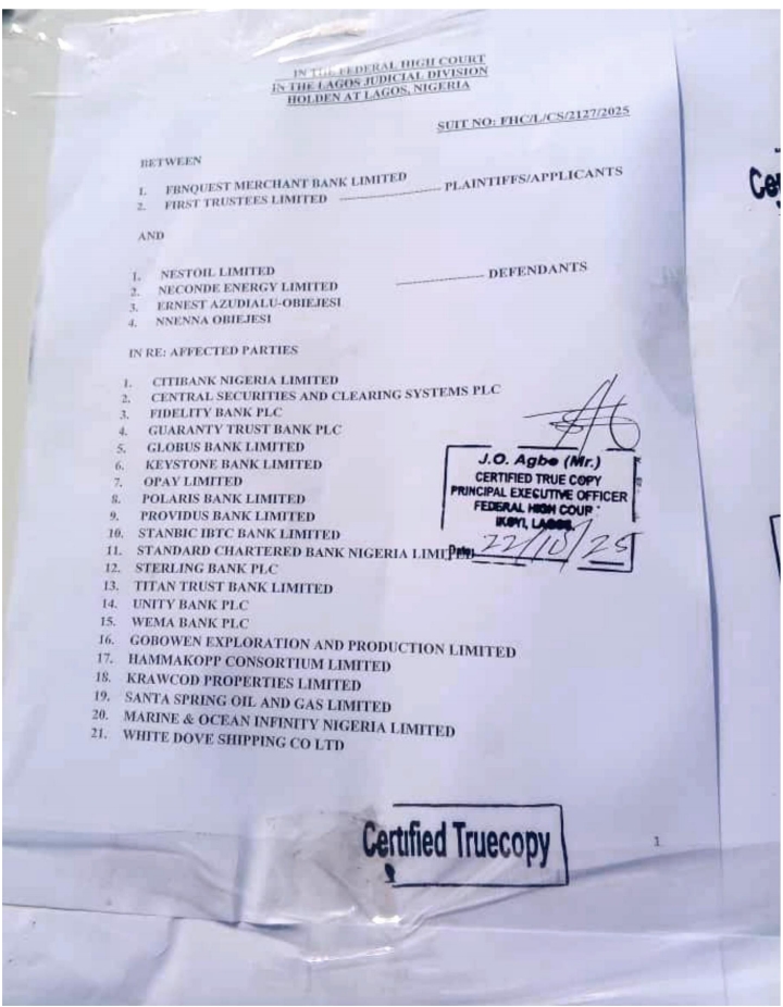 The investigation has revealed that on 22nd day of October, 2025 in Suit No. FHC/L/CS/2127/2025 between FBNQuest Merchant Bank Limited & 1 Other vs Nestoil Limited and others, the Federal High Court made Ex-parte orders which: