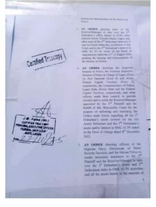 court, it went ahead to also direct the Navy and the DSS to equally assist as contained in Order 7 in the attached ruling of the Court.