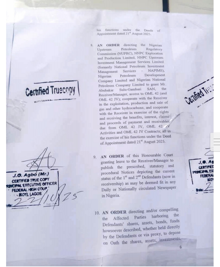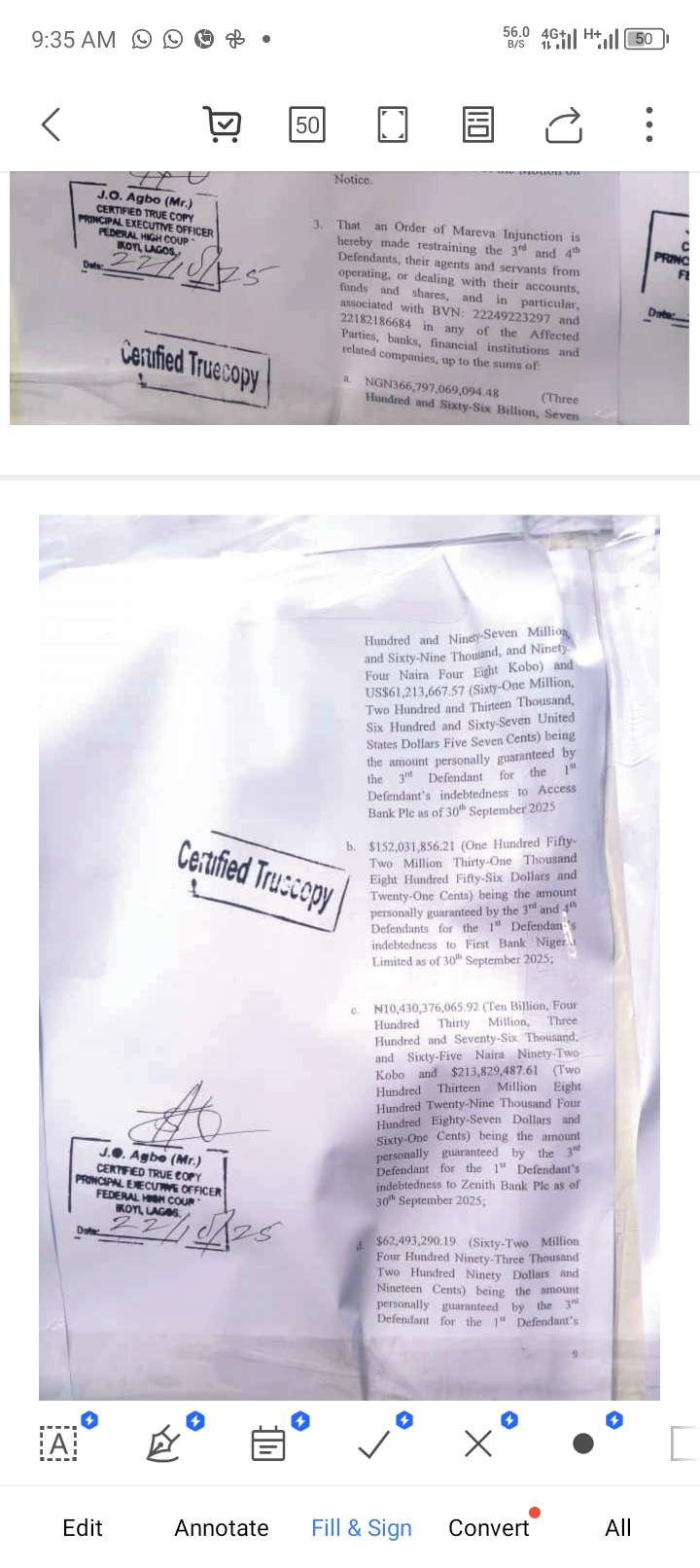 The allegations surfaced barely one week after Justice Dehinde Dipeolu of the Federal High Court in Lagos granted a Mareva injunction inSuit No. FHC/L/CS/2127/2025, empowering First Trustees Limited and FBNQuest Merchant Bank Limited to take possession of Nestoil’s assets pending determination of the case.