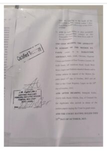 Faced with the above scenario, the three (3) petitions were submitted to the Hon. Chief Judge of the Federal High Court, one written by the 4th Defendant and the other two by counsel to the Defendants in the suit, Mofesomo Tayo Oyetibo, SAN.